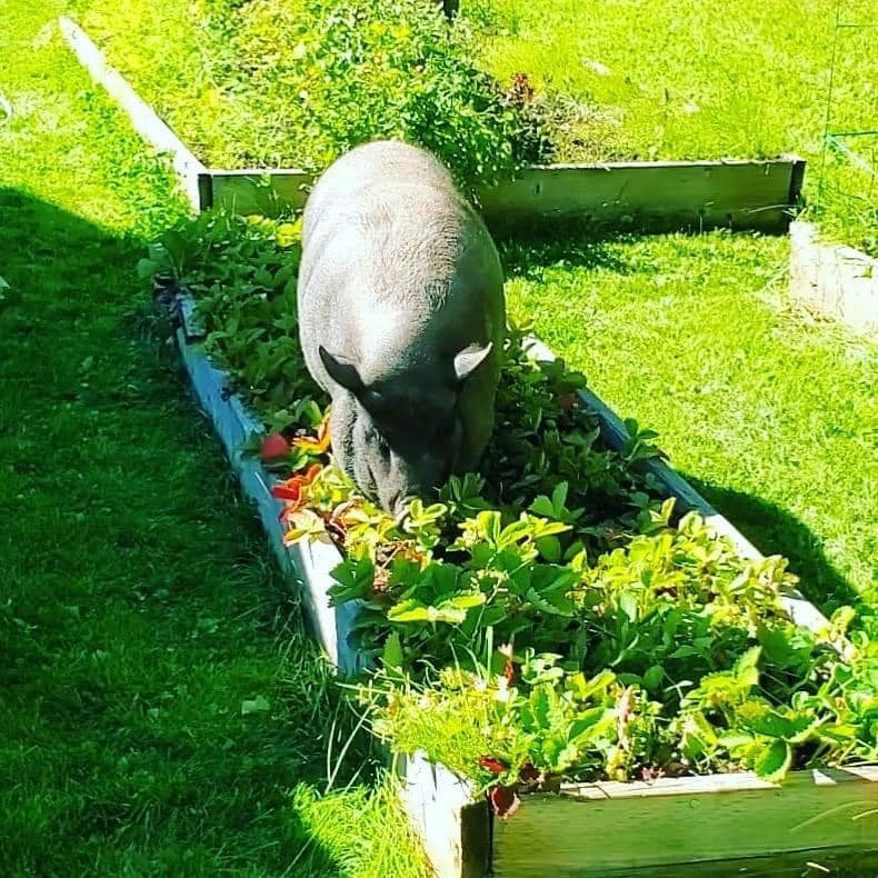 Rupert spent his first few months living in a guinea pig cage being underfed. He was then rehomed and spent a short time living in a drug house. He was rescued and came to us in 2020. Sadly, Rupert was the only pig of our herd who did not make it through erysipelas. He passed away in 2024 and is buried with Tate at PG Pet Memorial.