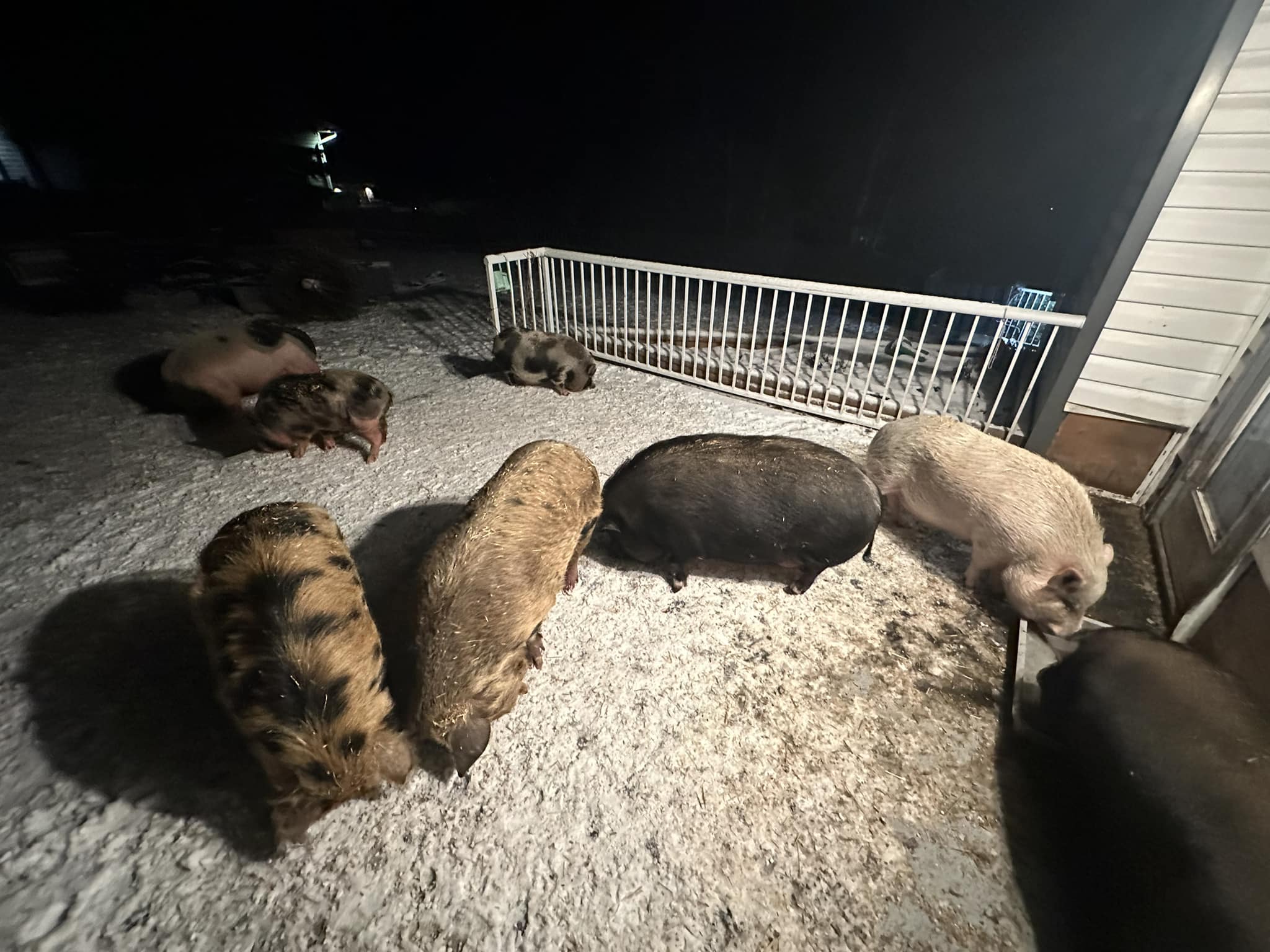 We currently have a total of 13 pigs at the sanctuary. 12 mini pigs and 1 farm pig. Each pig has a story.